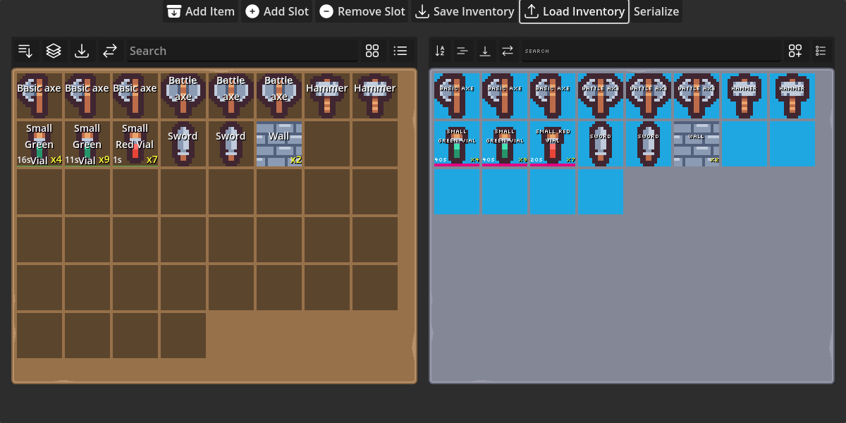 Two Inventory UIs side-by-side to showcase item management and transfers.